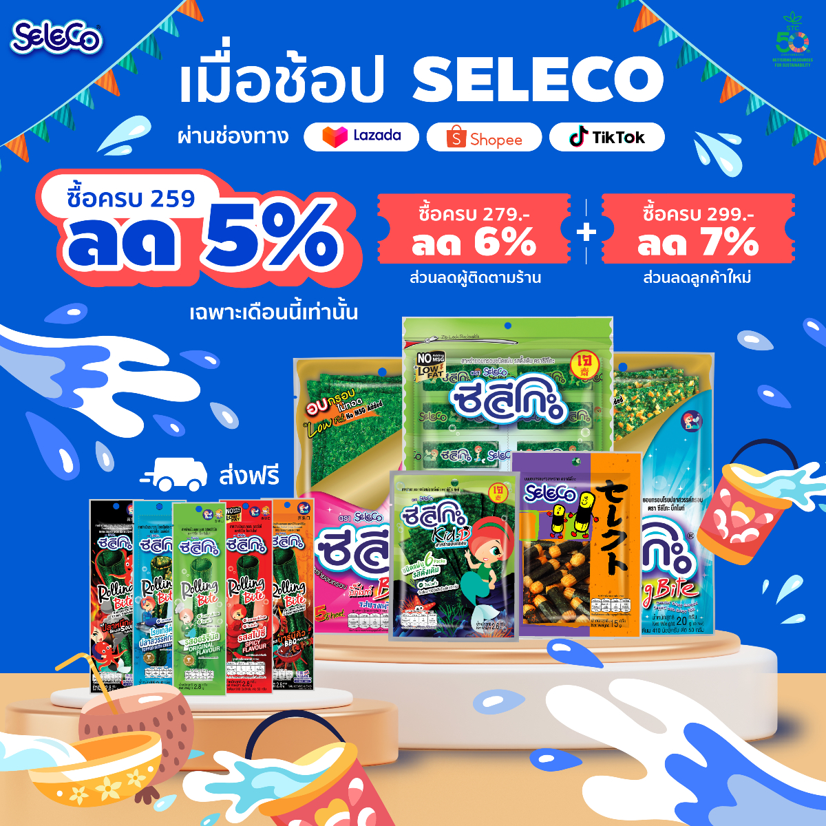 ✅ ซื้อสาหร่ายซีลีโกะชนิดใดครบ 𝟐𝟓𝟗 บาท ลดเลย 𝟓%