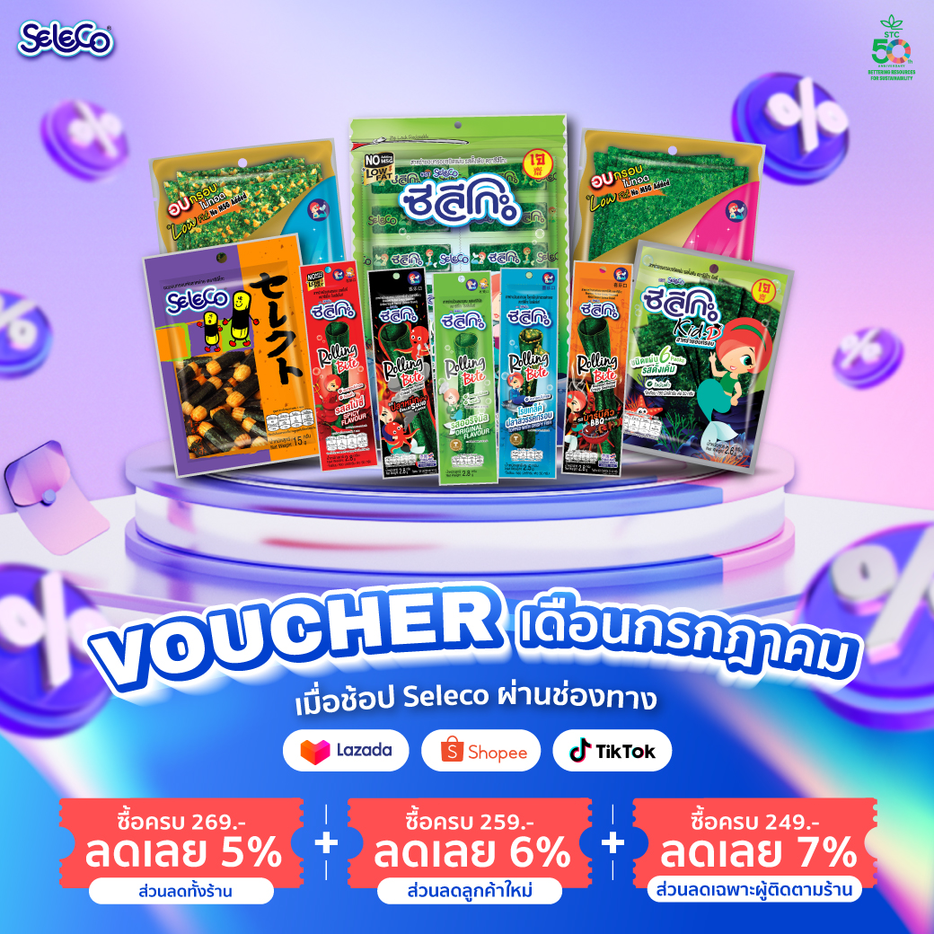 ซื้อสาหร่ายซีลีโกะชนิดใดครบ 𝟐𝟔𝟗 บาท ลดเลย 𝟓% (ส่วนลดทั้งร้าน)