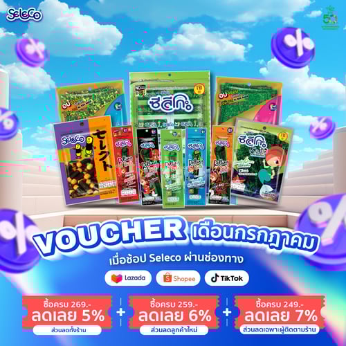 ✅ ซื้อสาหร่ายซีลีโกะชนิดใดครบ 𝟐𝟔𝟗 บาท ลดเลย 𝟓% (ส่วนลดทั้งร้าน)