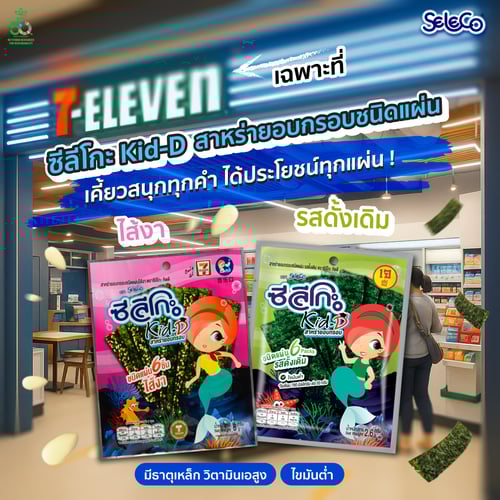 ซีลีโกะ 𝑲𝒊𝒅-𝑫 สาหร่ายอบกรอบชนิดแผ่น รสดั้งเดิม และไส้งา